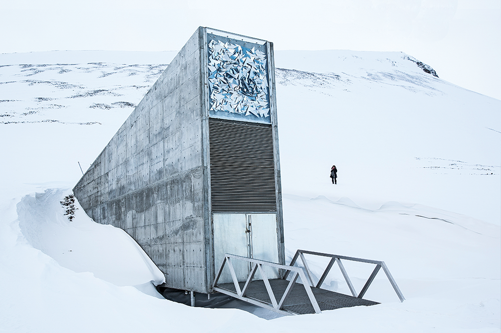 Svalbard não é a cidade do fim do mundo só porque fica no fim do mundo. Há outro motivo. Ela abriga o Global Seed Vault (banco global de sementes), construído pelo governo norueguês em 2008 para guardar sementes de todas as coisas que a humanidade planta – e reconstruir a agricultura global se ela for devastada por alguma catástrofe apocalíptica, como epidemias, inundações ou guerras. Existem outros bancos de sementes no mundo, mas nenhum como este: um bunker escavado dentro de uma montanha congelada. Sua entrada fica na encosta da montanha Plataberget (a mesma da base de satélites), 130 m acima do nível do mar. Mesmo na pior das hipóteses de aquecimento global, com os oceanos subindo 6 m, as sementes estarão a salvo.