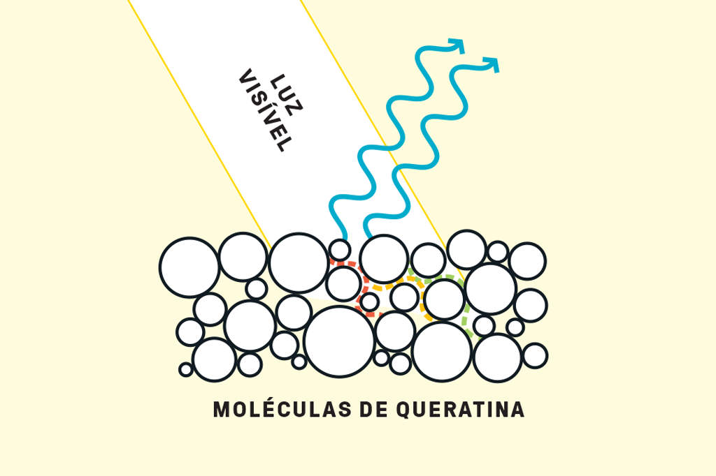 Nas penas de aves azuis, as moléculas de queratina são entremeadas por bolsões de ar. Essas estruturas dispersam radiações de outras cores que não o azul, cujo comprimento de onda é o único refratado. Em estruturas não alinhadas, o azul não brilha nem muda de tom de acordo com o ângulo de incidência da luz, como acontece com borboletas e pavões.