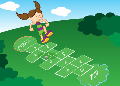 Do 1 ao 10 para chegar ao céu. Caso você não se lembre, a amarelinha, jogo popular entre as crianças de antigamente, tinha regras simples. Depois de desenhar o percurso no chão (como na foto acima) jogava-se uma pedrinha na primeira casa e o objetivo era ir pulando até chegar à marca circular, evitando a casinha em que estava a pedra. Na volta, o desafio era se equilibrar para pegar a pedrinha. Acredita-se que amarelinha teria sido inventada pelos romanos – gravuras mostram crianças brincando de amarelinha nos pavilhões de mármore nas vias da Roma antiga. Mas as primeiras referências ao jogo de que se tem registro confirmado datam do século 17. No manuscrito Book of Games (“Livro de jogos”, em português), compilado entre os anos de 1635 e 1672, o estudioso inglês Francis Willughby já descrevia a brincadeira em que crianças pulavam sobre linhas no chão no percurso que simbolizava a trajetória do homem através da vida.