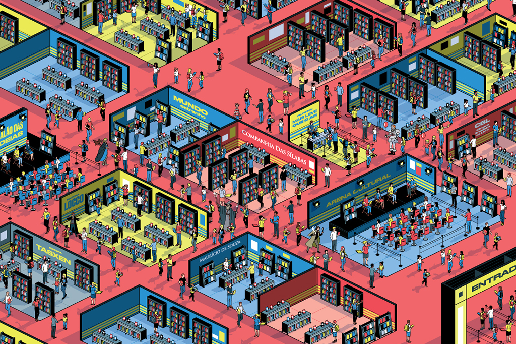 Editoras e expositores costumam confirmar sua participação entre sete e quatro meses antes da feira. O número de participantes varia. Se a empresa topar, começa o processo interno para definir como será seu estande. Qual vai ser o conceito? Quais produtos merecem mais destaque?