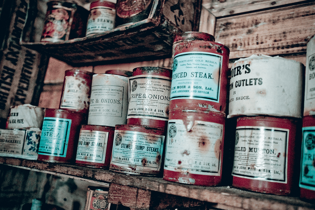 Esses lugares são como cápsulas do tempo. Graças à temperatura e a embalagens reforçadas – decoradas com rótulos típicos da Era Vitoriana –, boa parte dos alimentos não só está preservada como mantém o aroma original. São potes de geleia, vidros de molho inglês e até bombons de limão, armazenados com xícaras e toalhas de chá, cachecóis e meias, carvão e pólvora.