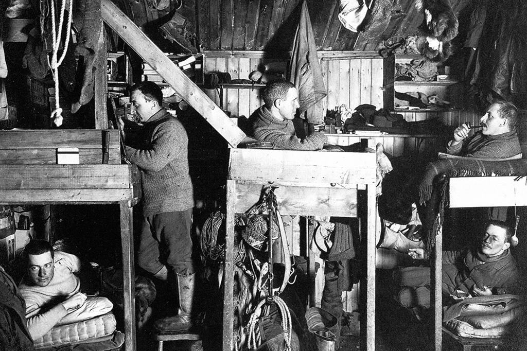 A cabana da missão de Scott era bem maior e mais confortável que as de 1898. “A palavra ‘cabana’ é enganosa”, escreveu o britânico em seu diário. “Nossa residência é uma casa de tamanho considerável, para todos os efeitos a melhor já erguida nos polos. Tem 15 m de comprimento, 7,5 m de largura e 2,7 m de pé direito.”