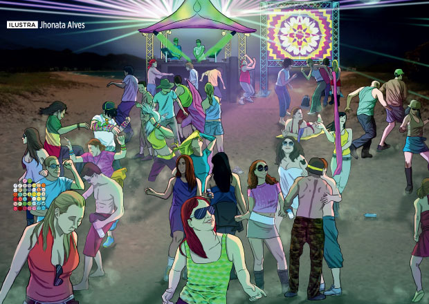 Ainda rolavam maconha e LSD. Mas a droga do momento era o ecstasy, também chamado de “bala” e “e”. Seu principal componente, o MDMA, causa euforia e bem-estar. Também aguça sentidos como o tato – por isso tantos se abraçavam ou ficavam passando a mão um no outro. Mas não pense que era pura pegação. O clima era mais sensual do que sexual.