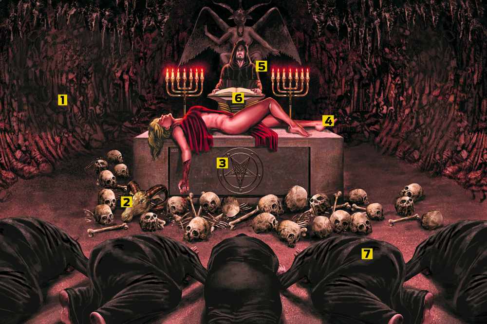 O rito, de acordo com as regras, aconteceria em ambientes subterrâneos, como porões e cavernas. Animais mortos integrariam o cenário, já que a inspiração veio de religiões pré-cristãs, nas quais o sacrifício de bichos era frequente. Outra figura decorativa seria Baphomet, ídolo pagão reformulado no século 19 por ocultistas como Eliphas Levi