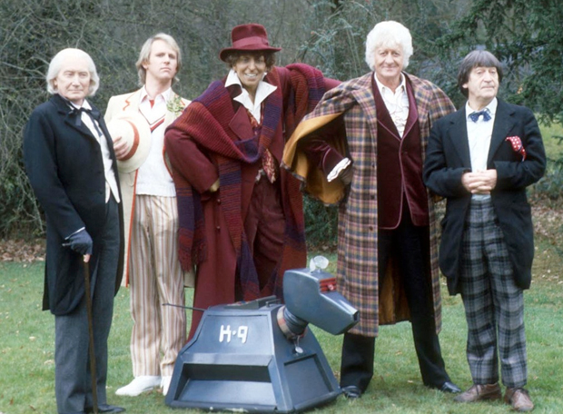 A primeira reunião de Doctors foi em 1973, quando a série completou dez anos. No episódio “Os Três Doutores”, o Primeiro, Segundo e Terceiro se reuniram para combater Ômega, um Senhor do Tempo renegado que habita um universo composto de antimatéria. Intérprete do primeiro Doctor, o ator William Hartnell estava com problemas de saúde na época, então o foco do programa ficou na relação entre o Segundo e o Terceiro. Com personalidades distintas, o Segundo (Patrick Troughton) e o Terceiro (Jon Pertwee) tiveram alguns embates. Há uma cena na qual o mais velho diz para o calouro que não ficou satisfeito com a nova decoração da Tardis. Repleto de efeitos especiais psicodélicos dos anos 70, o episódio virou um clássico e estabeleceu a tradição de encontros entre os diversos Senhores do Tempo.
