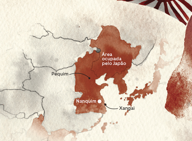 Em 1937, os japoneses atacaram a costa da China. Conquistaram Xangai após quatro meses de luta, que deixaram 250 mil baixas chinesas contra 40 mil japonesas. Os chineses fugiram para Nanquim, destruindo campos de arroz e tudo que pudesse ajudar as tropas japonesas